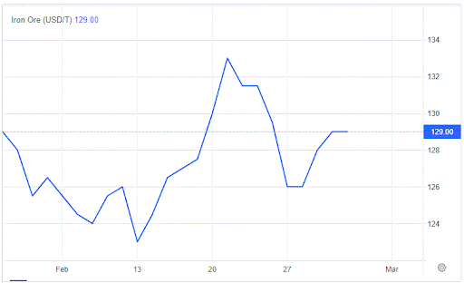 Giá quặng sắt năm nay diễn biến rất thất thường. Quặng hàm lượng 62% sắt mới đây nhất được giao tế ở mức giá 126,8 USD/tấn, trong khi quặng sắt Trung Quốc giao du trên sàn Đại Liên ở mức 919 dân chúng tệ (133,15 USD)/tấn, mức cao nhất kể từ tháng 7 năm 2022.